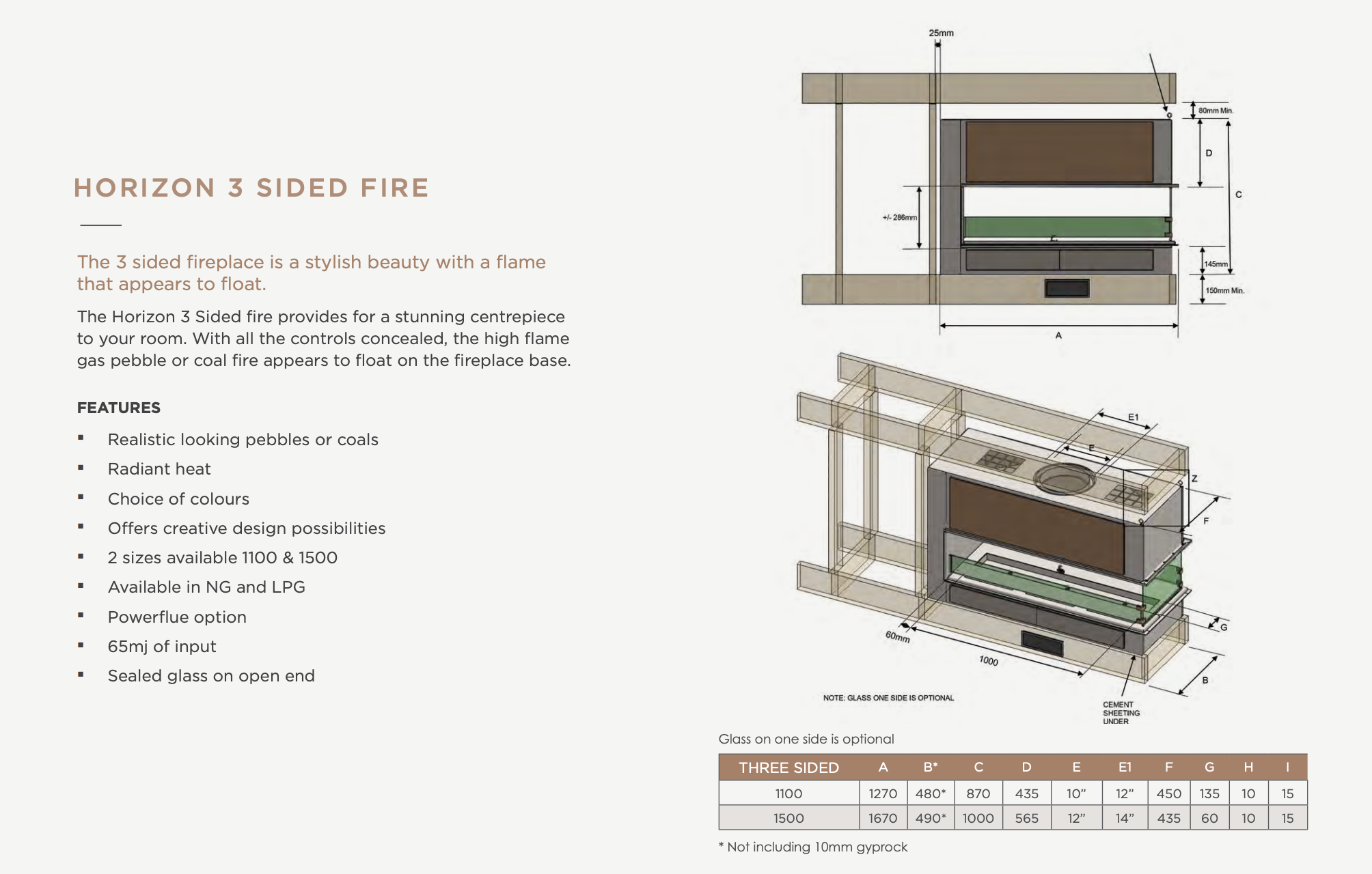 HORIZON 3 SIDED - OPEN FEATURE GAS FIREPLACE - Please Enquire for Pricing