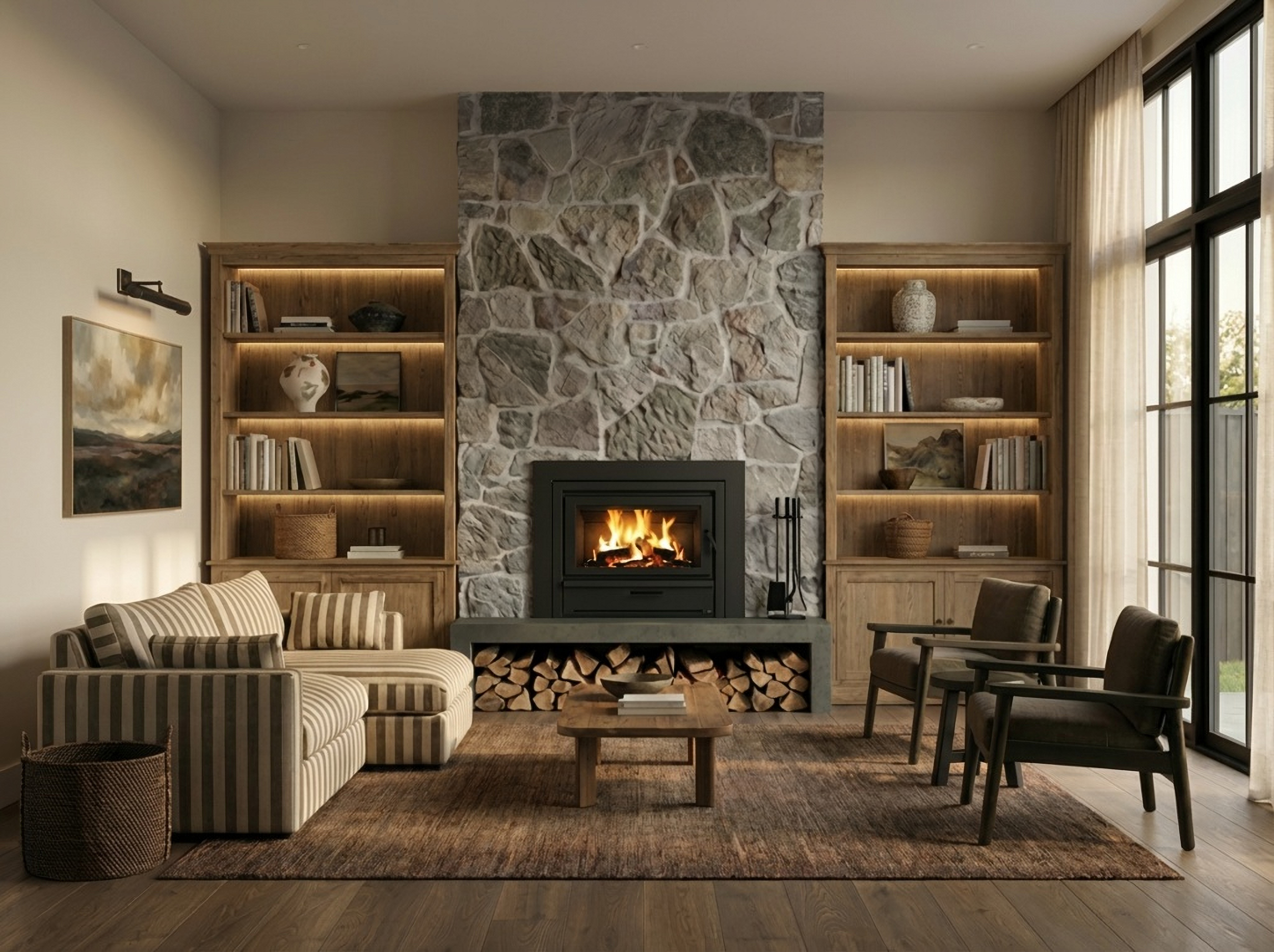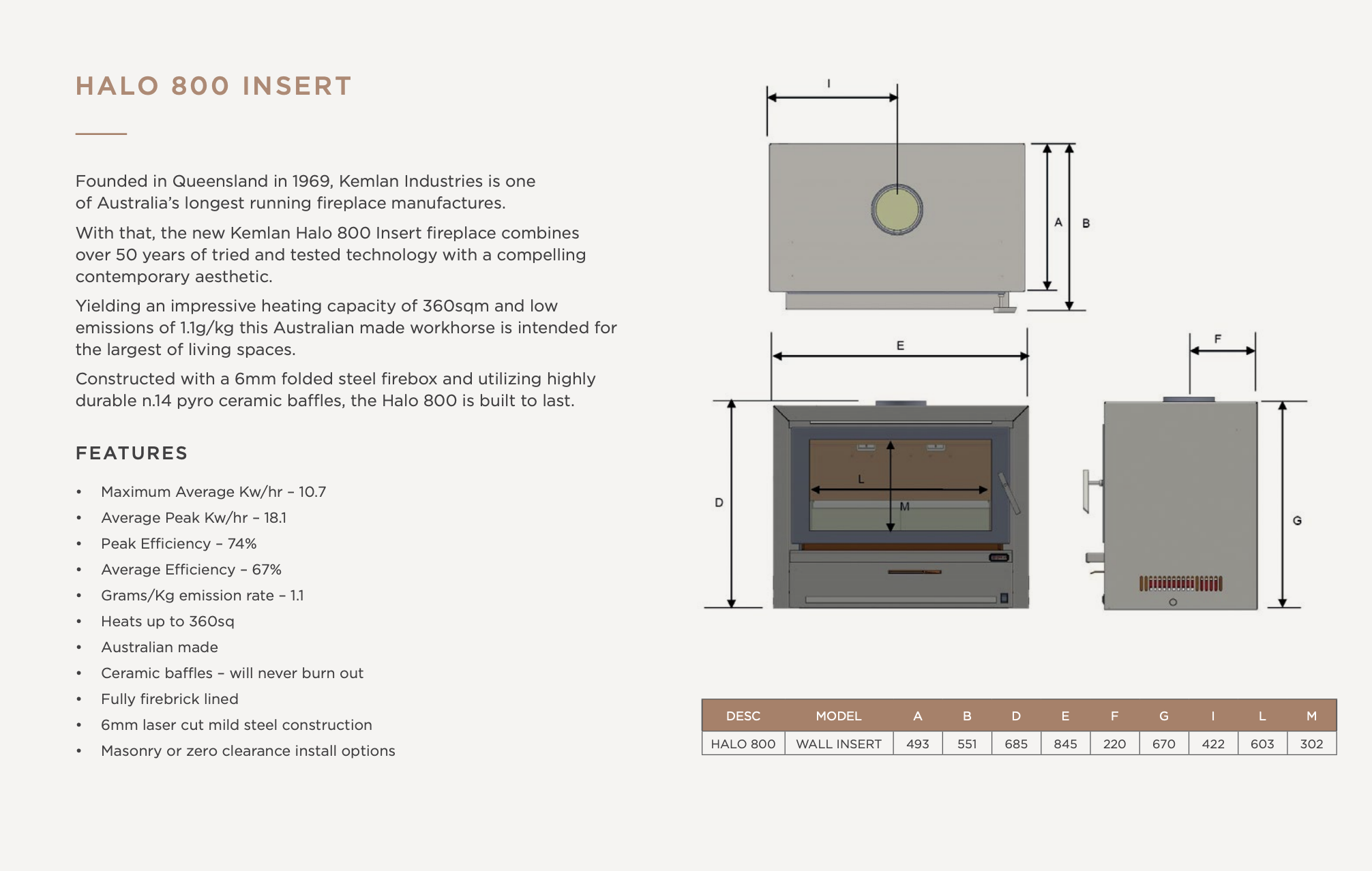 Upgrade your home’s heating efficiency as well as overall ambiance with this superb slow combustion wood heater. This powerful, efficient and stylish inbuilt fireplace is more than just a heating solution; it’s an enhancement to your living space that combines functionality with modern design. Experience the ultimate in warmth and comfort with the Halo 800 Slow Combustion Wood Fireplace – the premier choice for Australian homes.