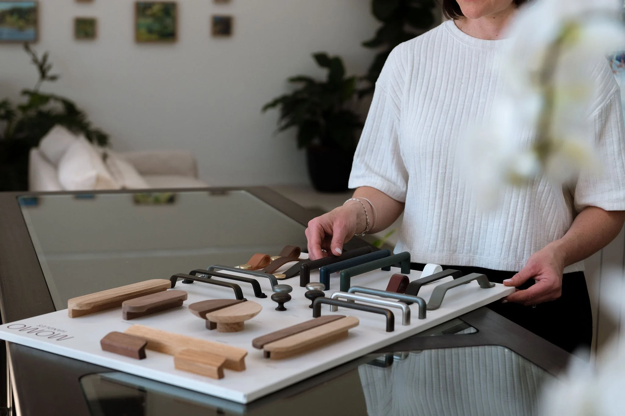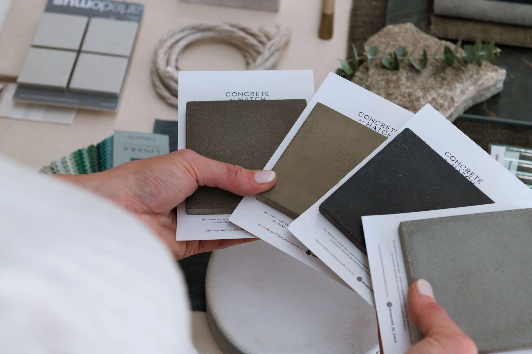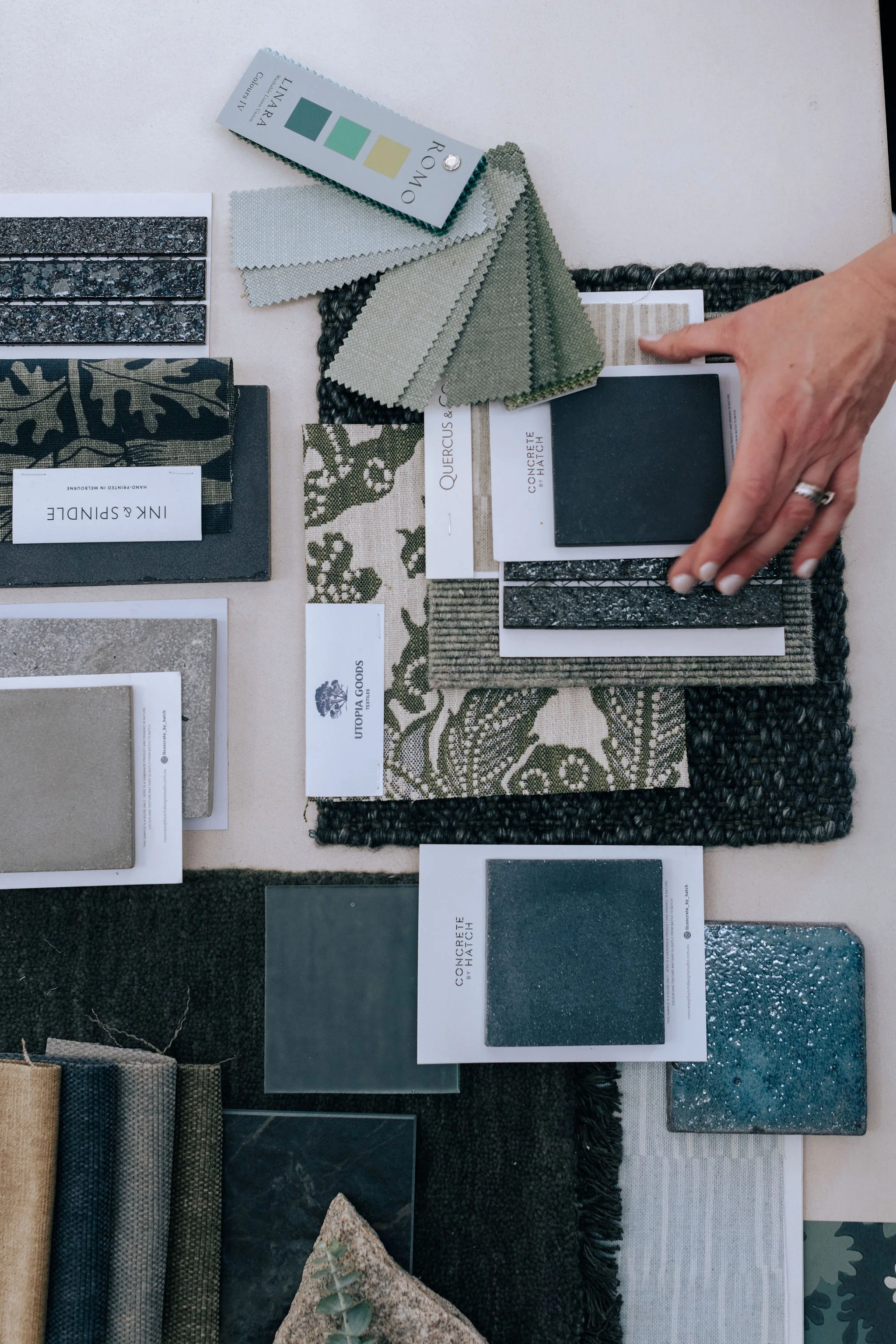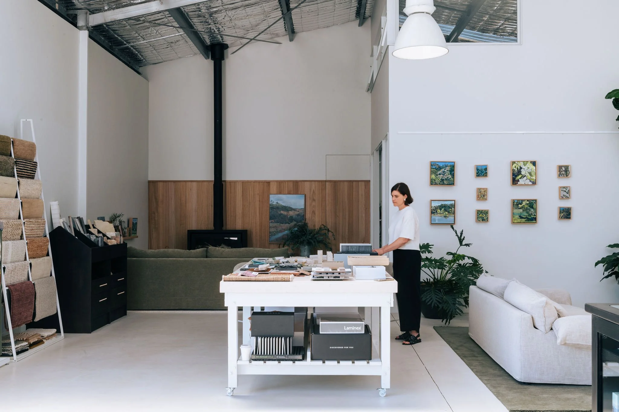 Our team brings extensive industry knowledge and access to a large sample library: upholstery fabrics, wallpapers, indoor and outdoor rugs, carpets, floorboards, ceramic and stone tiles, natural stone wall cladding, benchtops, cabinetry fronts and hardware, tapware, lighting, timber and MDF wall profiles, plaster finishes, paint colours, and more.