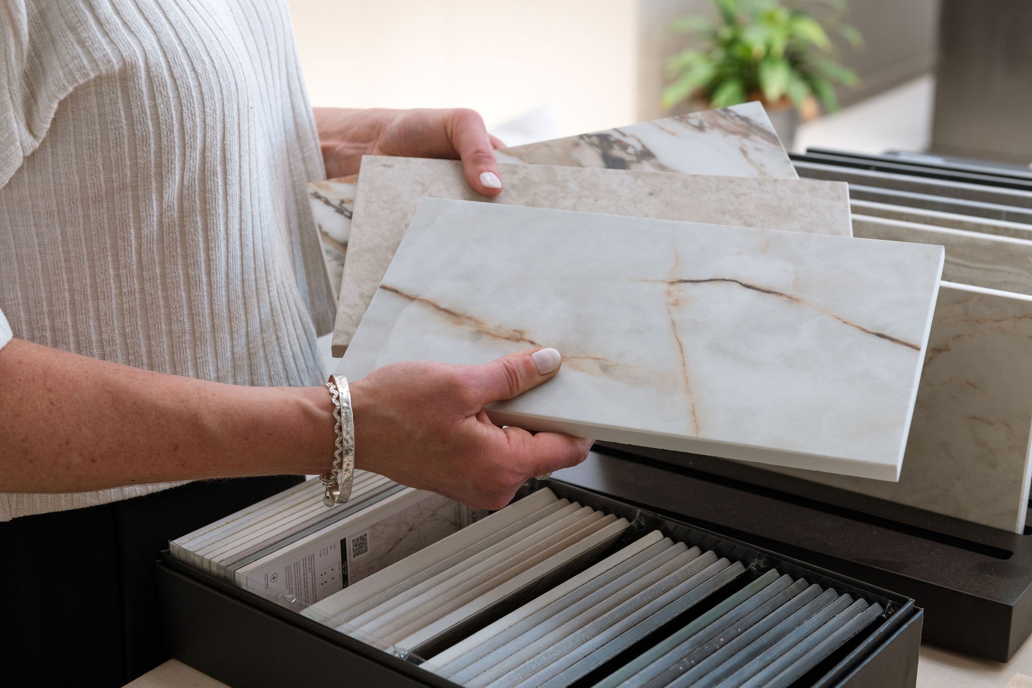 Our showroom also houses a large sample library—stone, tiles, brick-face tiles, timber profiles, plaster finishes, MDF mouldings, wallpapers, upholstery fabrics, rugs, furniture catalogues and more—to help you make informed, distinctive design decisions.